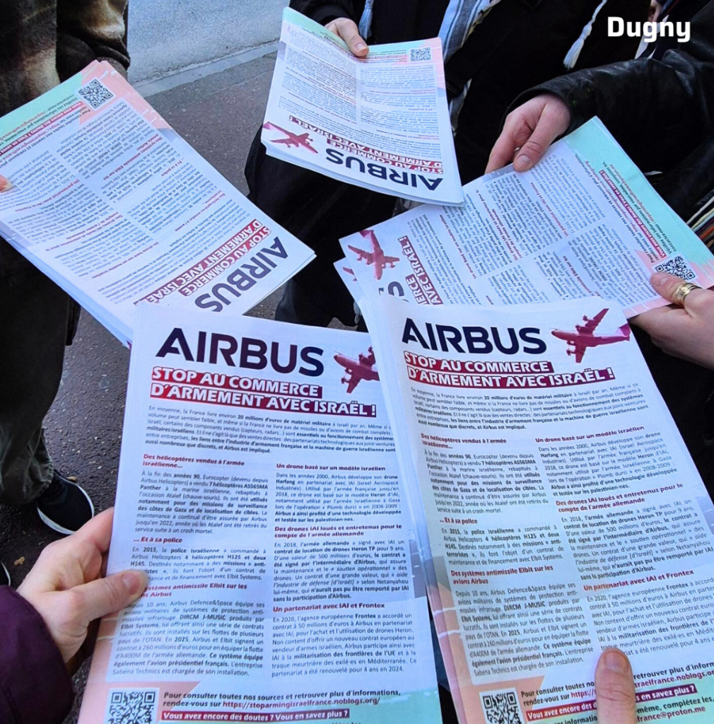 Du 2 au 8 février 2026, la semaine nationale d’action Stop Arming Israel a su montrer que loin d’être oubliée, la mobilisation contre le commerce d’armement avec Israël continue de prendre de l’ampleur. Au total, ce sont plus de 38 actions qui ont eu lieu dans toute la France, des milliers de tracts distribués à des salarié·es de plus en plus nombreux·ses à remettre en question les choix coupables de leurs employeurs, et des dizaines de collectifs et des centaines de personnes mobilisées pour faire vivre la campagne.